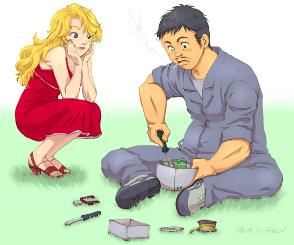 子供の頃に読んだ時、センベエさんは「顔でかくて、短足で、太ってて、見た目小汚くて、挙句の果てにはセクハラおやじ」のどうしようもないダメ男で「生理的に無理」と思っていたんですけど、大人になった今、改めて見たらけっこう格好良かった。……私の目がおかしくなったんでしょうか(汗)。でも重い機械を運んだりする為かそれなりに筋肉ついてそうだし、アラレ達への面倒見はいいし(何だかんだ文句言ってても人情味がある)、みどりさんに対して一途で真剣だし、あと機械いじりしている時の無心の顔は格好良かったよ。あとこれはキャラ全体的に言える事ですけど、けっこう服装のセンスがいいなーと。センベエさん髭の手入れもしてるみたいだし、何気に気を使っているような気がする。